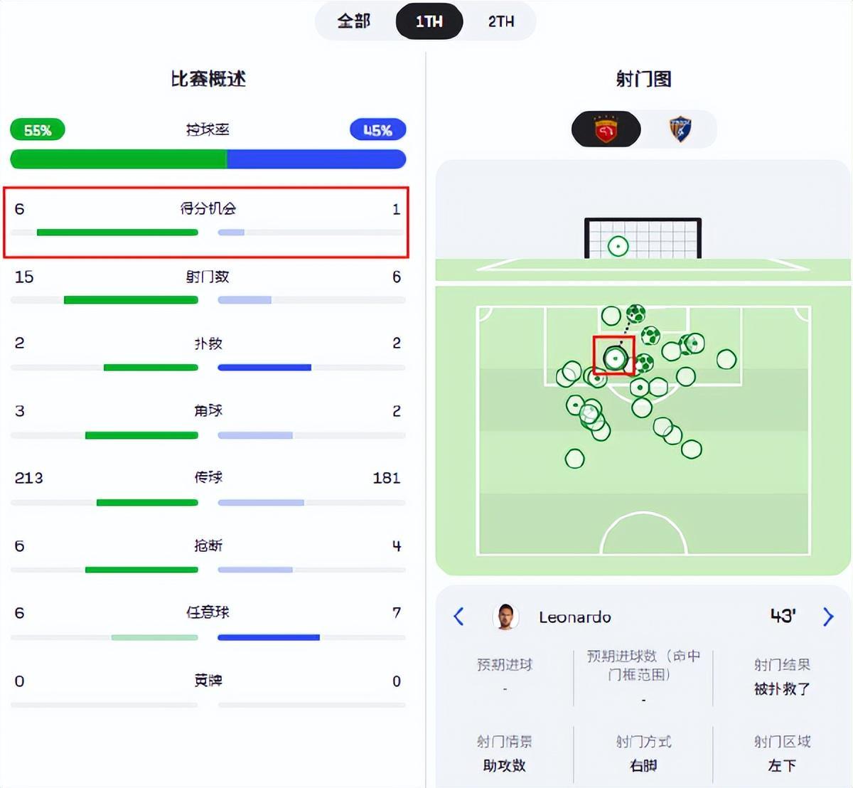 问题是中路的莱昂纳多得分效率实在是太过于低下,尽管上半场他一度为上港先开纪录,但是他也错失了太多的绝佳得分机会。