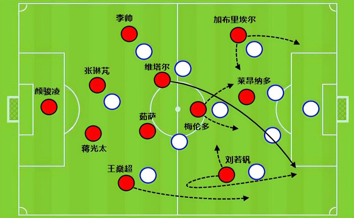 这场比赛称得上是刘若钒的个人代表作,从高位逼抢和争夺二点球发起二次进攻(制造点球)到组织推进(维塔尔点球破门前的那次转移球找加布里埃尔),再到自己梅开二度,称得上是闪耀全场。