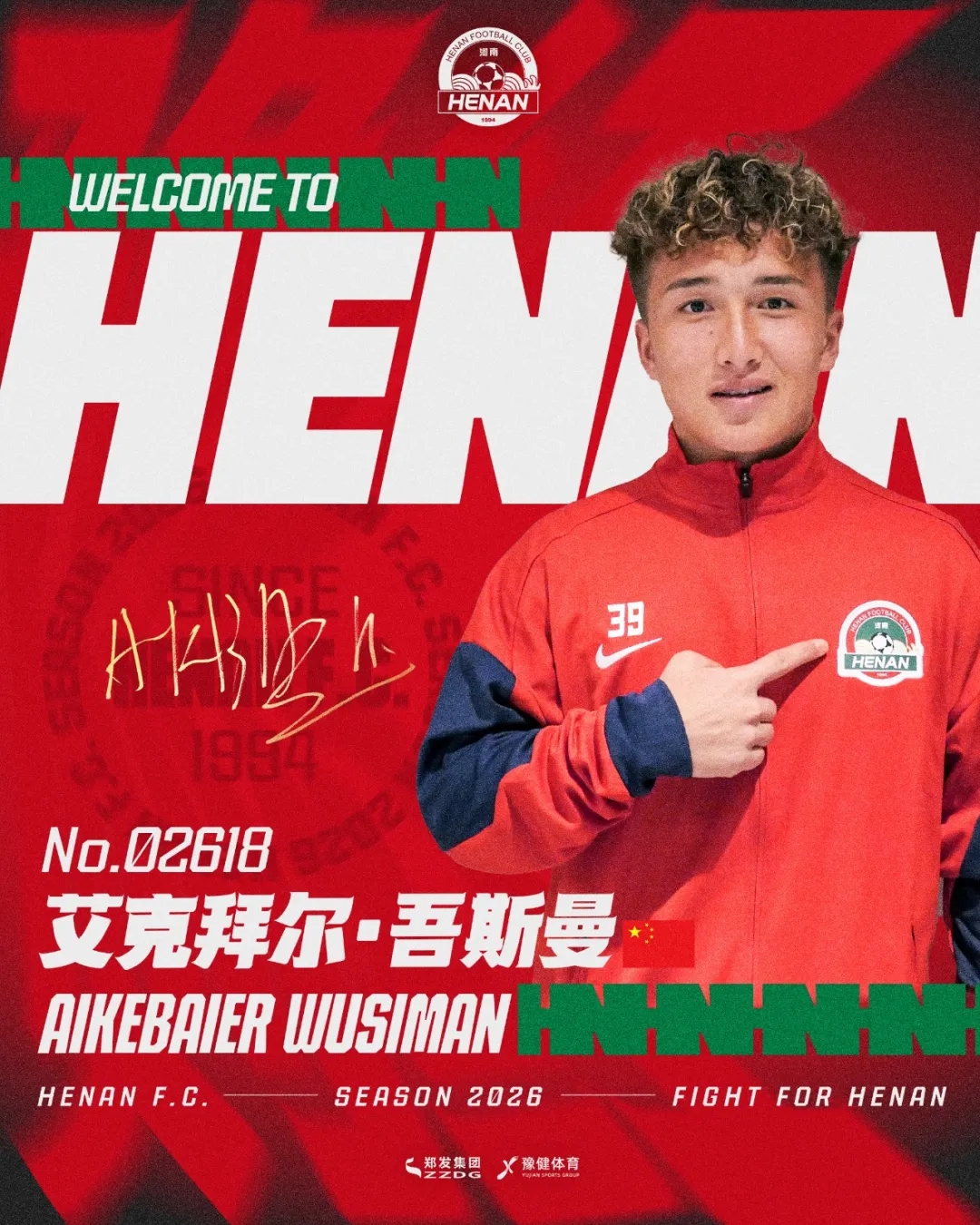 欢迎艾斯拜尔加盟河南足球俱乐部,期待你与全体将士并肩作战,为河南足球拼下更多荣耀!